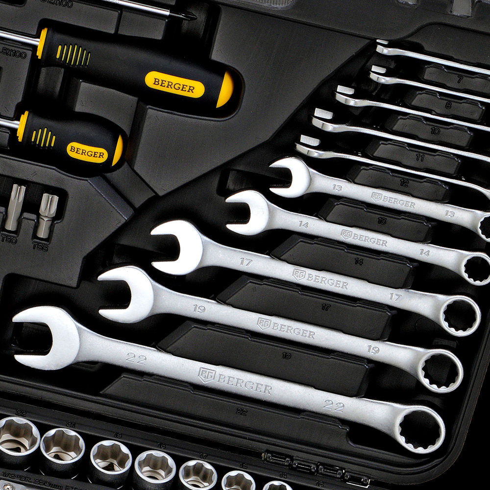 | Ключи комбинированные: | 7, 8, 10, 11, 12, 13, 14, 17, 19, 22 мм |