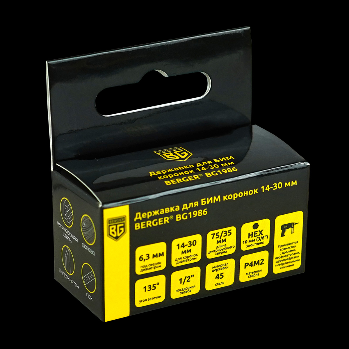 Диапазон диаметров совместимых коронок: 14-30 мм, подходит к коронкам BG1972, BG1973, BG1974, BG1975, BG1976, BG1977, BG1978