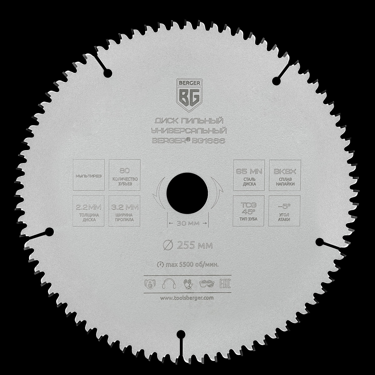 Сталь диска: 65Mn / 45-48 HRC