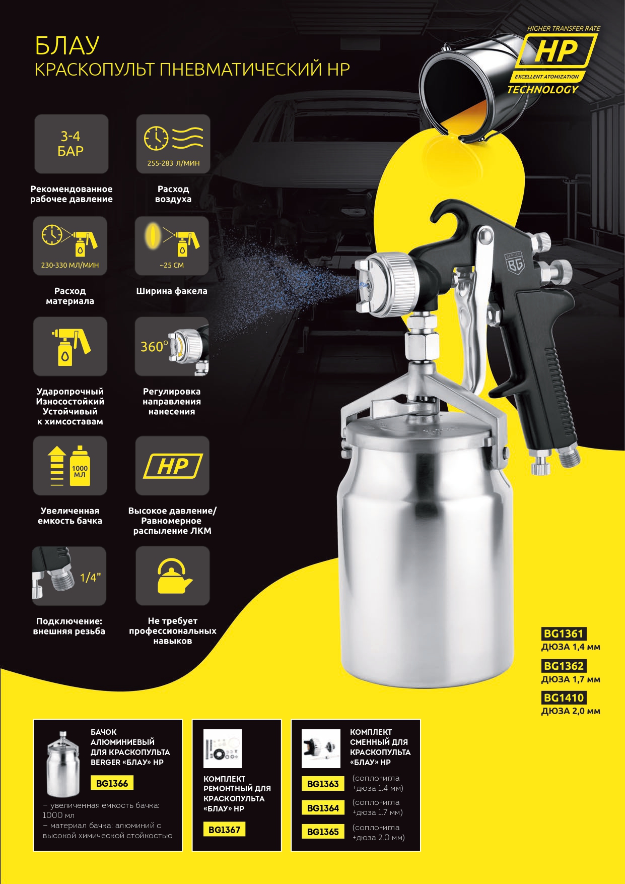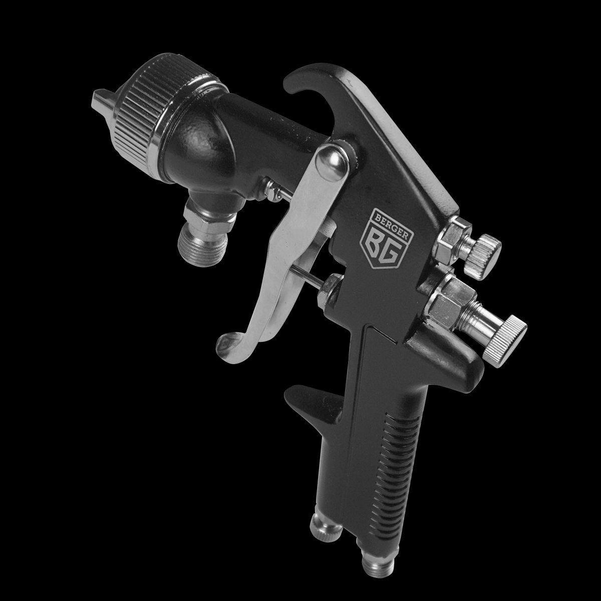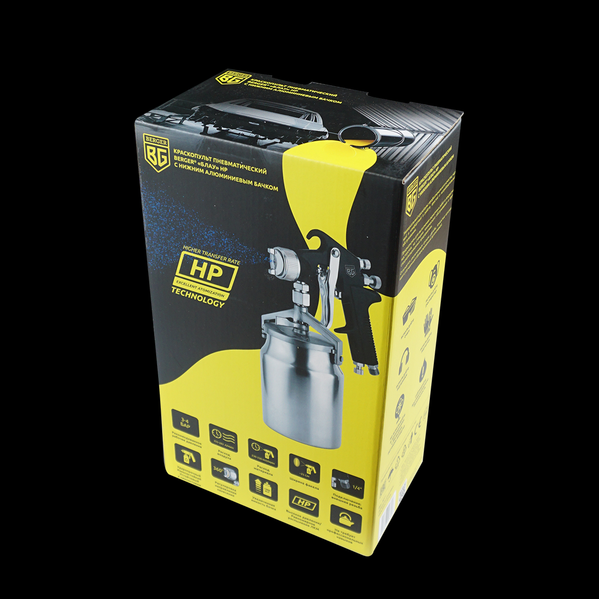 — нижнее расположение бачка позволяет ставить краскопульт на горизонтальные поверхности во время пауз в работе