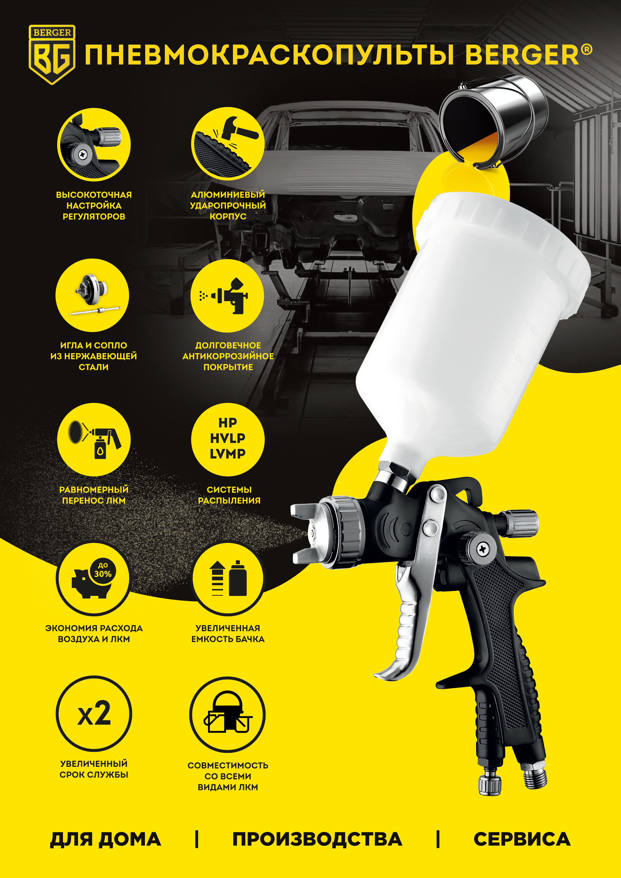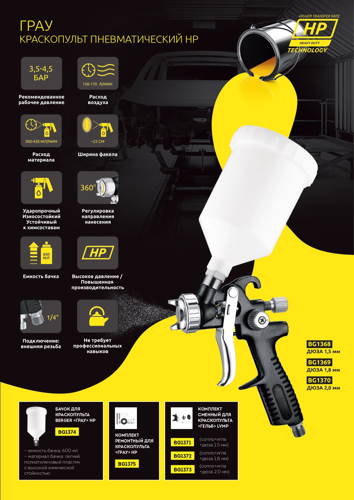 КРАСКОПУЛЬТ ПНЕВМАТИЧЕСКИЙ «ГРАУ» HP ВЕРХНИЙ БАЧОК