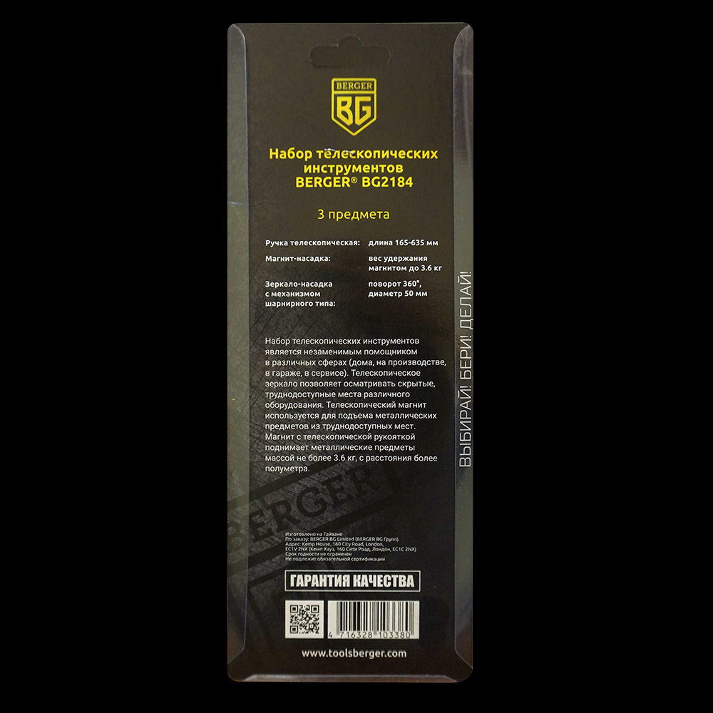 Набор телескопических инструментов является незаменимым помощником автомеханика, мастера по ремонту электротехники, моделиста. Телескопическое зеркало позволяет осматривать скрытые, труднодоступные места различного оборудования. Телескопический магнит используется для подъема металлических предметов из труднодоступных мест. Магнит с телескопической рукояткой поднимает металлические предметы массой не более 3.6 кг, с расстояния более полуметра.