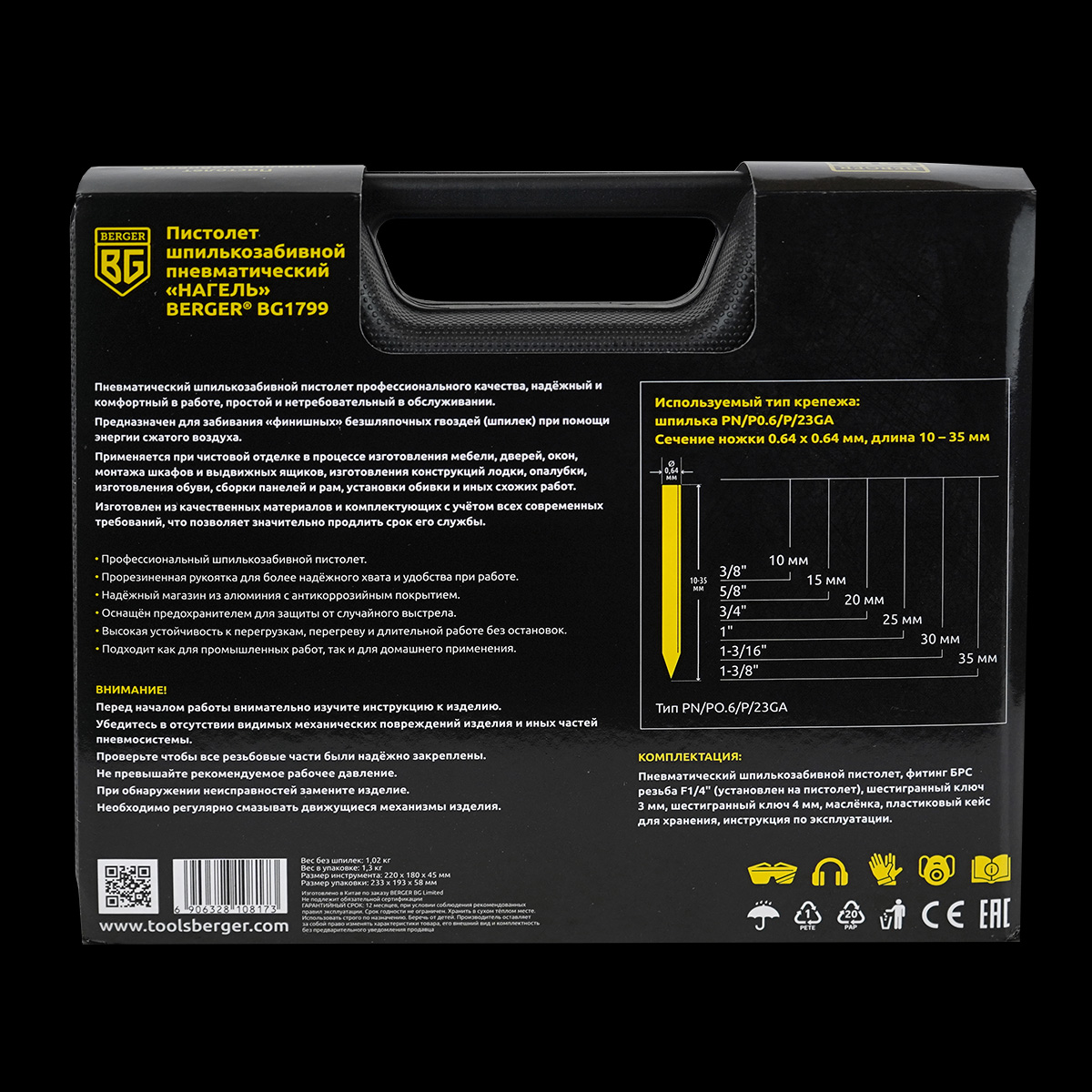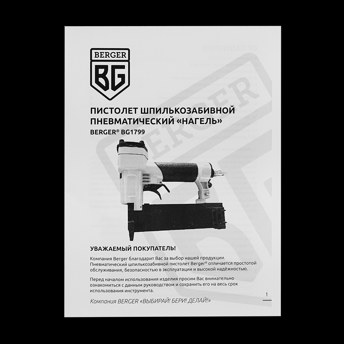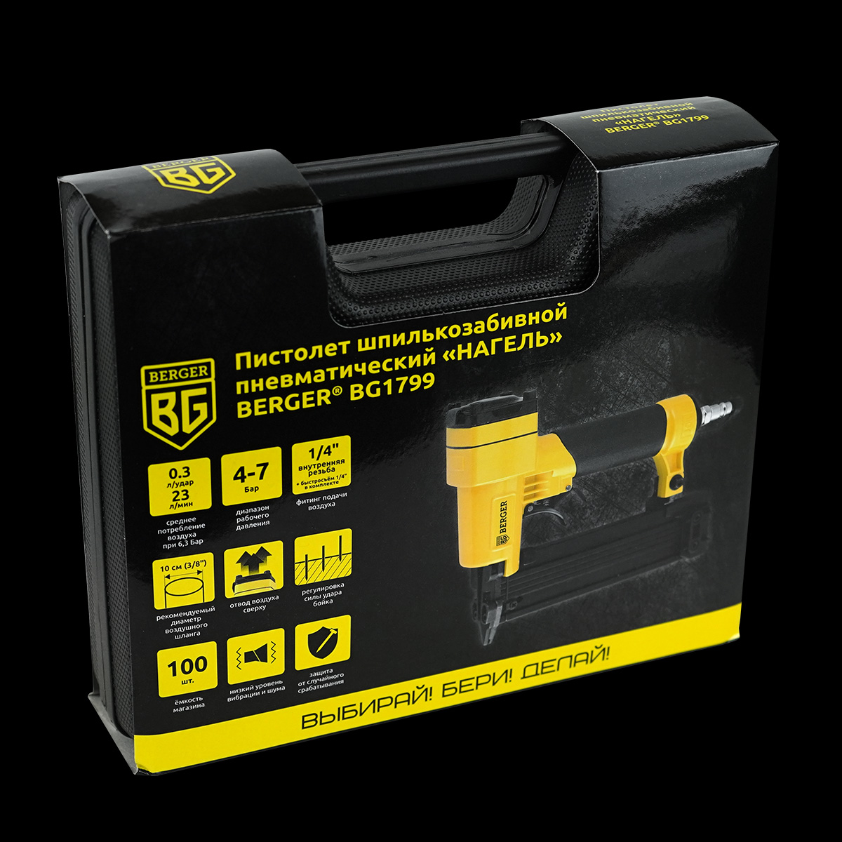 Пневматический шпилькозабивной пистолет «НАГЕЛЬ» BERGER BG1799 профессионального качества, надёжный и комфортный в работе, простой и нетребовательный в обслуживании.