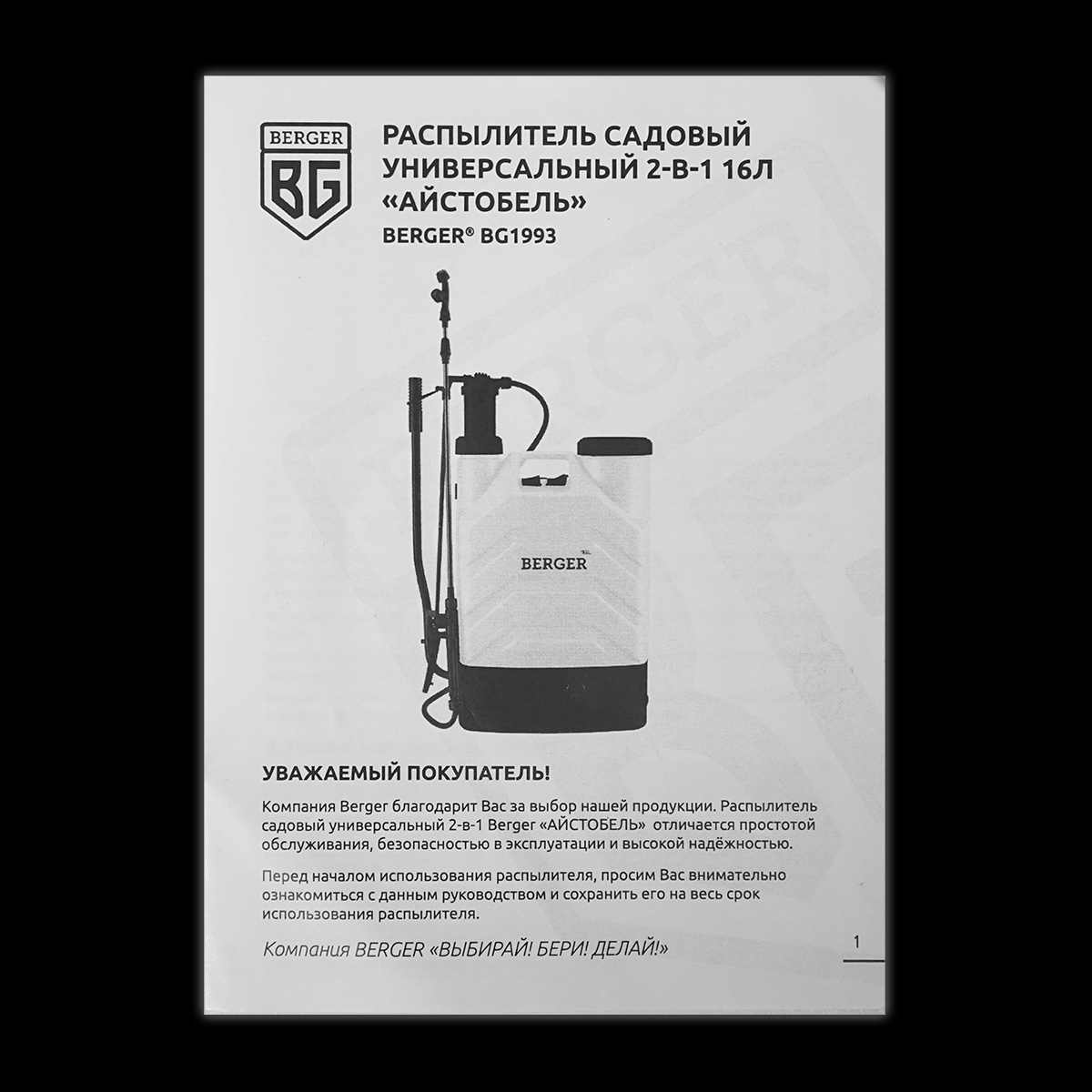 – Распылитель садовый BERGERⓇ «АЙСТОБЕЛЬ изготовлен из качественных материалов и комплектующих с учетом всех современных требований, что позволяет значительно увеличить его ресурс.