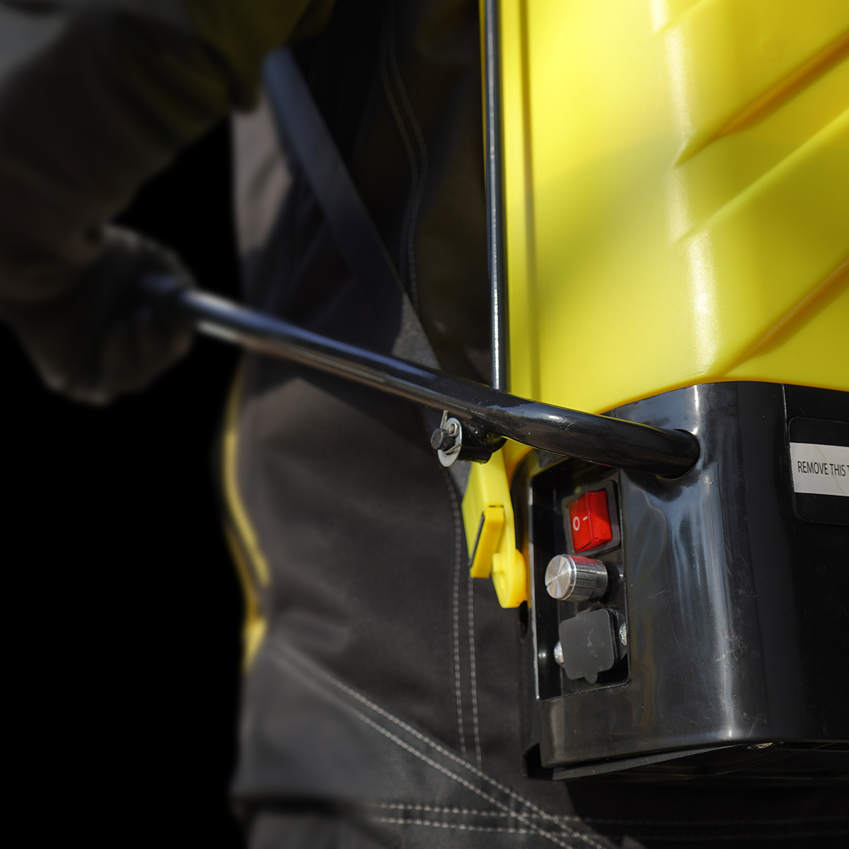 – Конструкция включает в себя дополнительную ручную помпу – для обеспечения работы в любых условиях, независимо от наличия доступного источника электрического питания для зарядки аккумулятора.