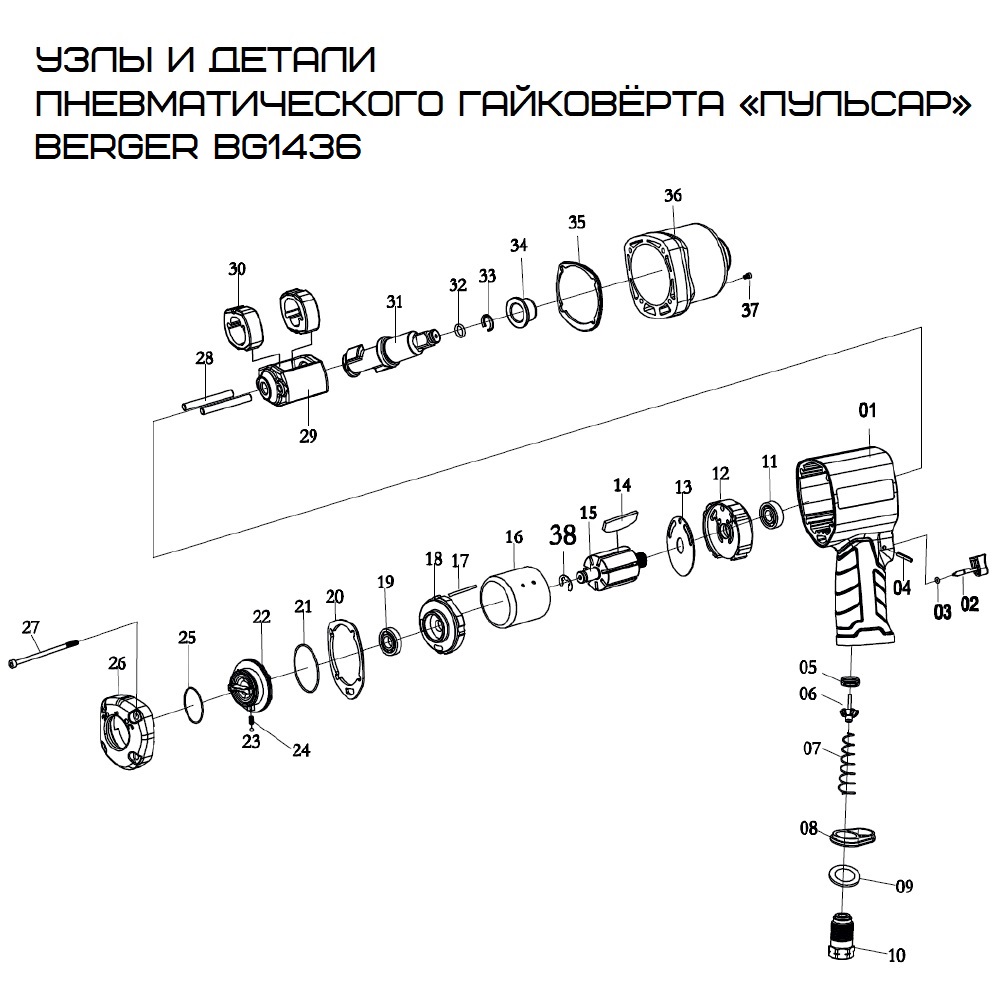 Ремкомплект для гайковёрта «ПУЛЬСАР» №1 (#34; 36; 37)