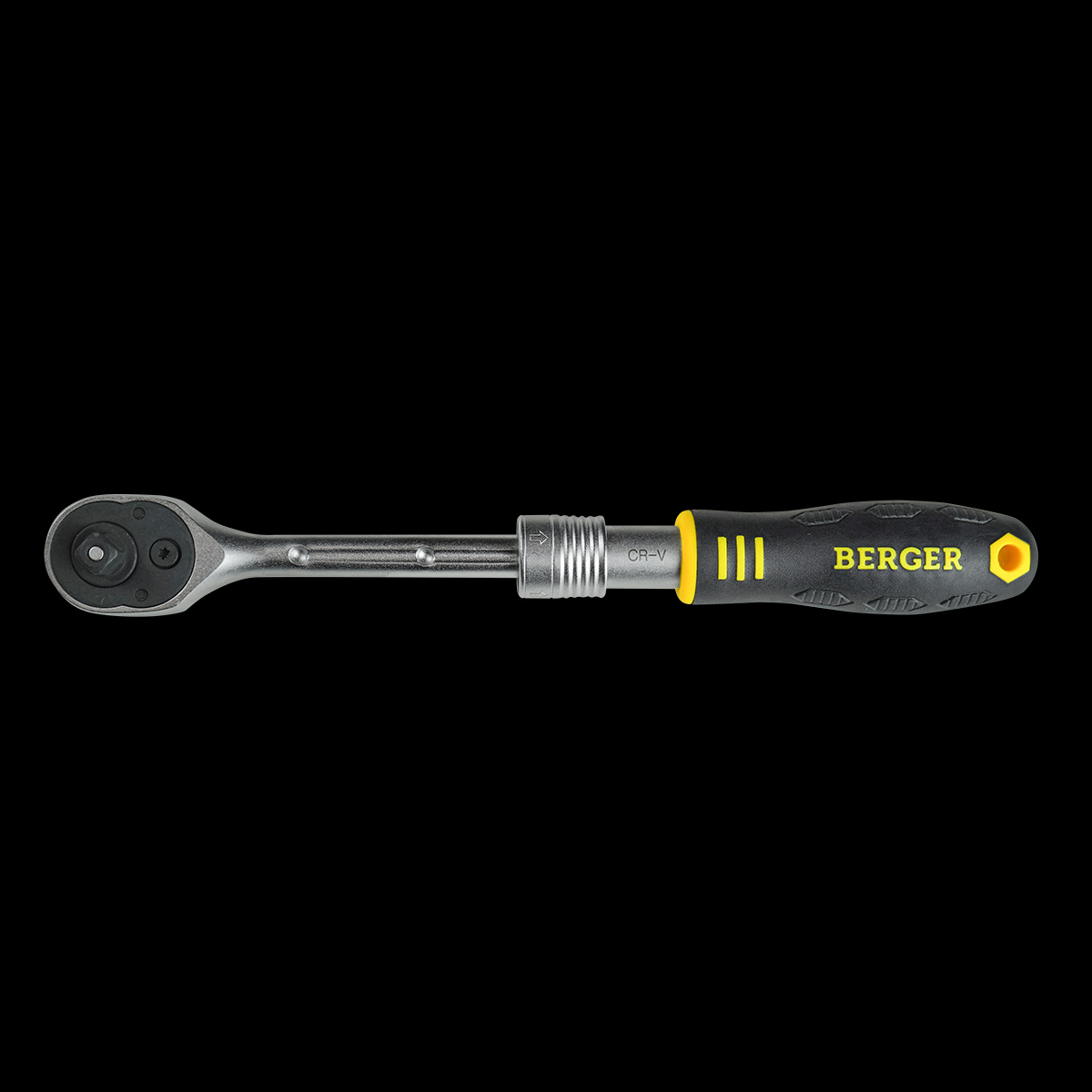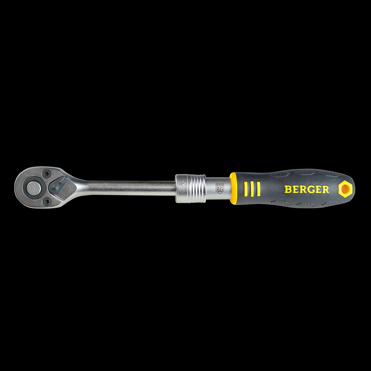 Телескопическая трещотка с возможностью промежуточной фиксации в 3-ех положениях длины рукоятки (примерный шаг составляет 25 мм). Благодаря телескопическому удлинителю, трещотка позволяет снизить усилие при работе с крепежом, имеющий высокий момент фиксации. Шестерня с 72 зубцами, позволит использовать трещотку в ограниченном пространстве, так как угол перестановки рукоятки равен 5°