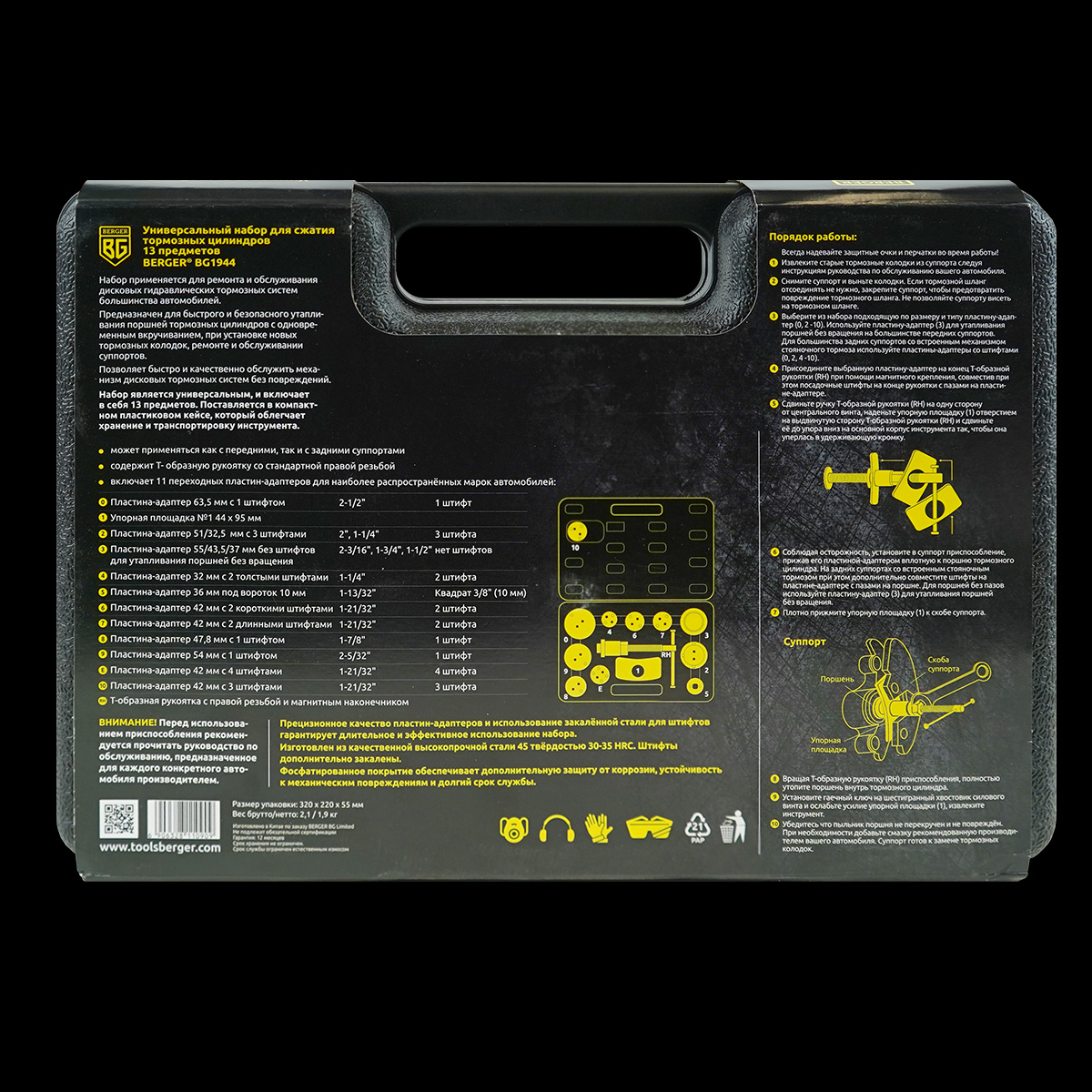 Набор BERGER BG1944 применяется для ремонта и обслуживания дисковых гидравлических тормозных систем большинства автомобилей.