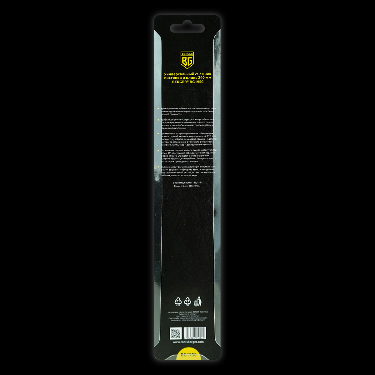 Материал: хромированная рабочая часть из высококачественной инструментальной углеродистой стали повышенной прочности, удобная эргономичная рукоятка из устойчивого к маслам и растворителям износостойкого полипропилена, что обеспечивает продолжительный срок службы съёмника.