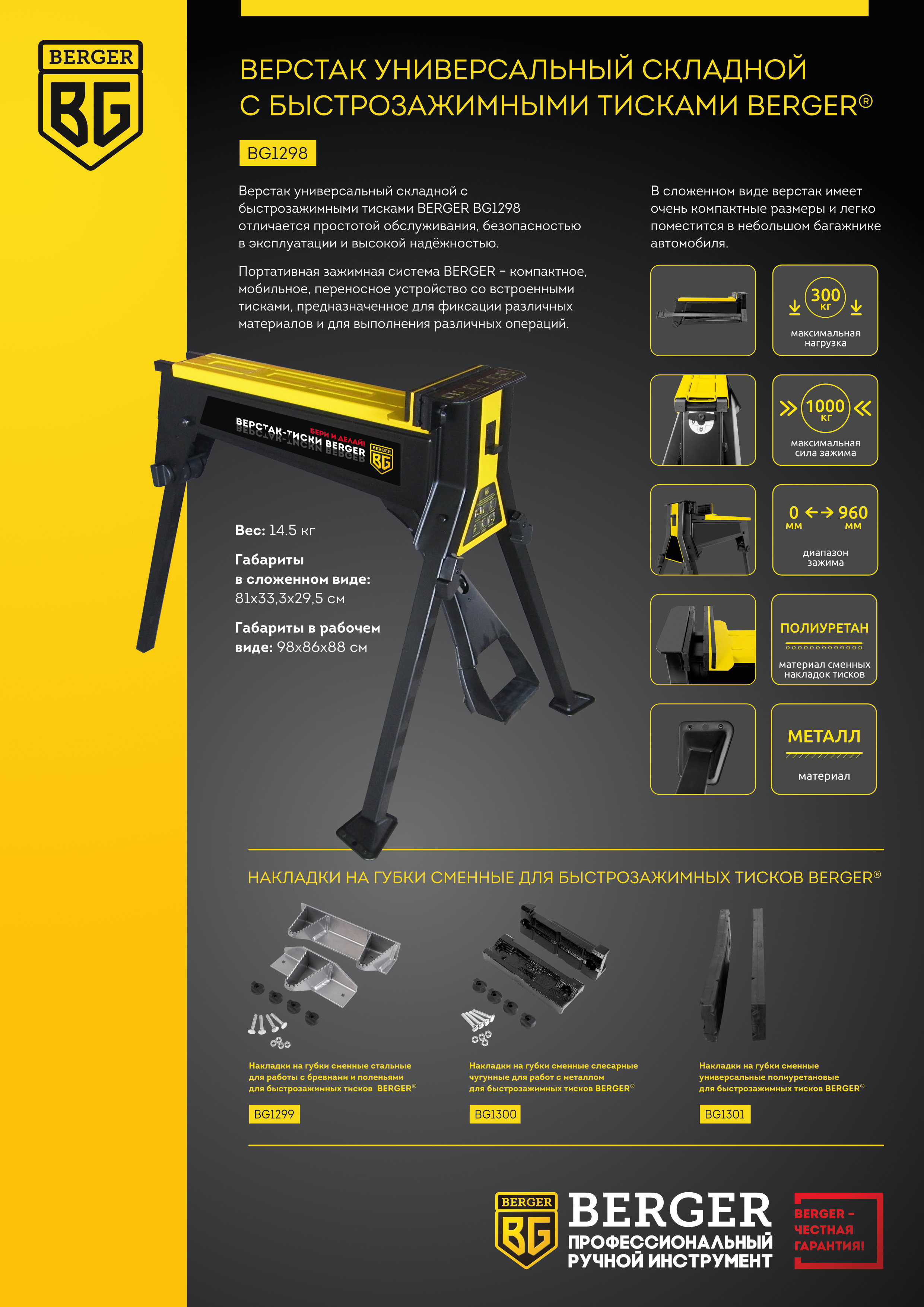 ВЕРСТАК УНИВЕРСАЛЬНЫЙ СКЛАДНОЙ С БЫСТРОЗАЖИМНЫМИ ТИСКАМИ